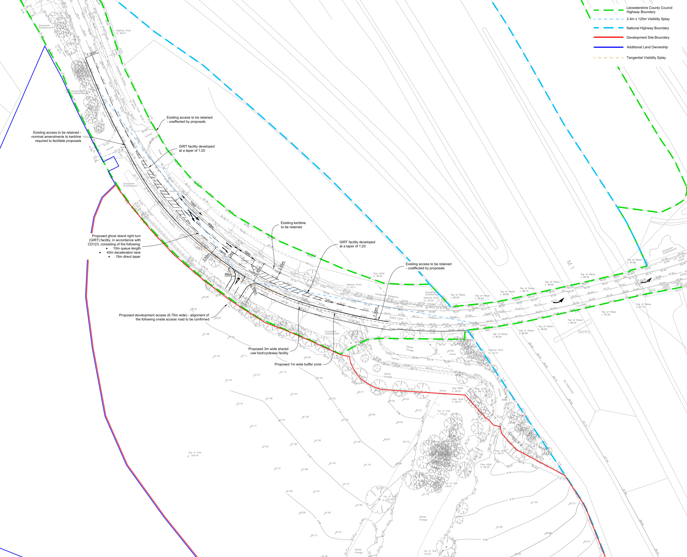 Vehicular access to the site will be taken from a new priority junction with Ratby Lane to the north of the proposed development. The development itself will be arranged around an accessible internal road and pedestrian network, and the network of new walking and cycling routes within the site will connect with a variety of access points aligned with the existing public rights of way network.